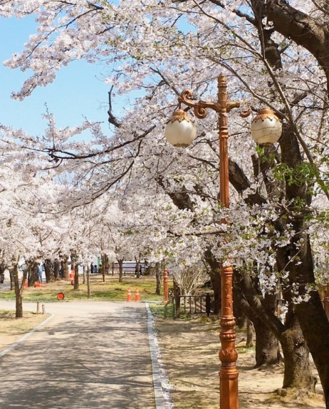 📸 벚꽃 아래에서 위를 향해 찍으면 벚꽃이 가득한 배경 연출 가능!