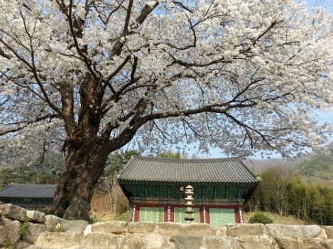 사찰 초입에서부터 벚꽃이 활짝 핀 길을 따라 걸어보세요. 벚꽃잎이 바람에 흩날리는 모습을 보고 있으면, 그야말로 "힐링" 그 자체!